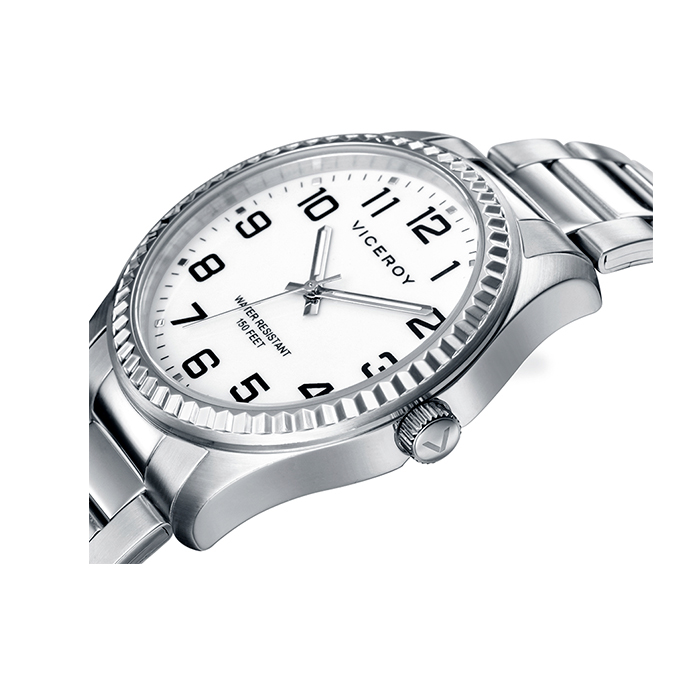 Elegancia en acero para el hombre moderno. Este modelo 40525-04 de la colección Viceroy presenta una caja de acero inoxidable de 41 mm y brazalete a juego, esfera blanca de diseño limpio y movimiento de cuarzo fiable. Resistente al agua hasta 50 m (5 bar), combina funcionalidad y estilo clásico para acompañarte tanto en el día a día como en ocasiones especiales.